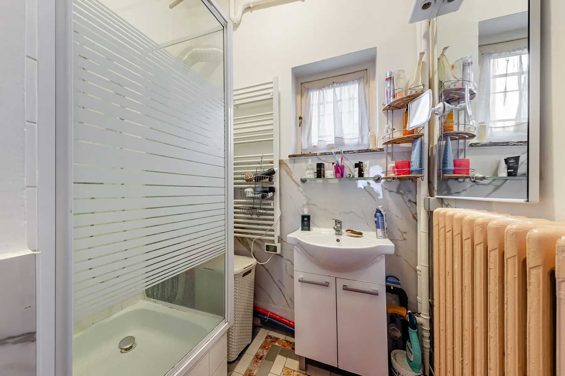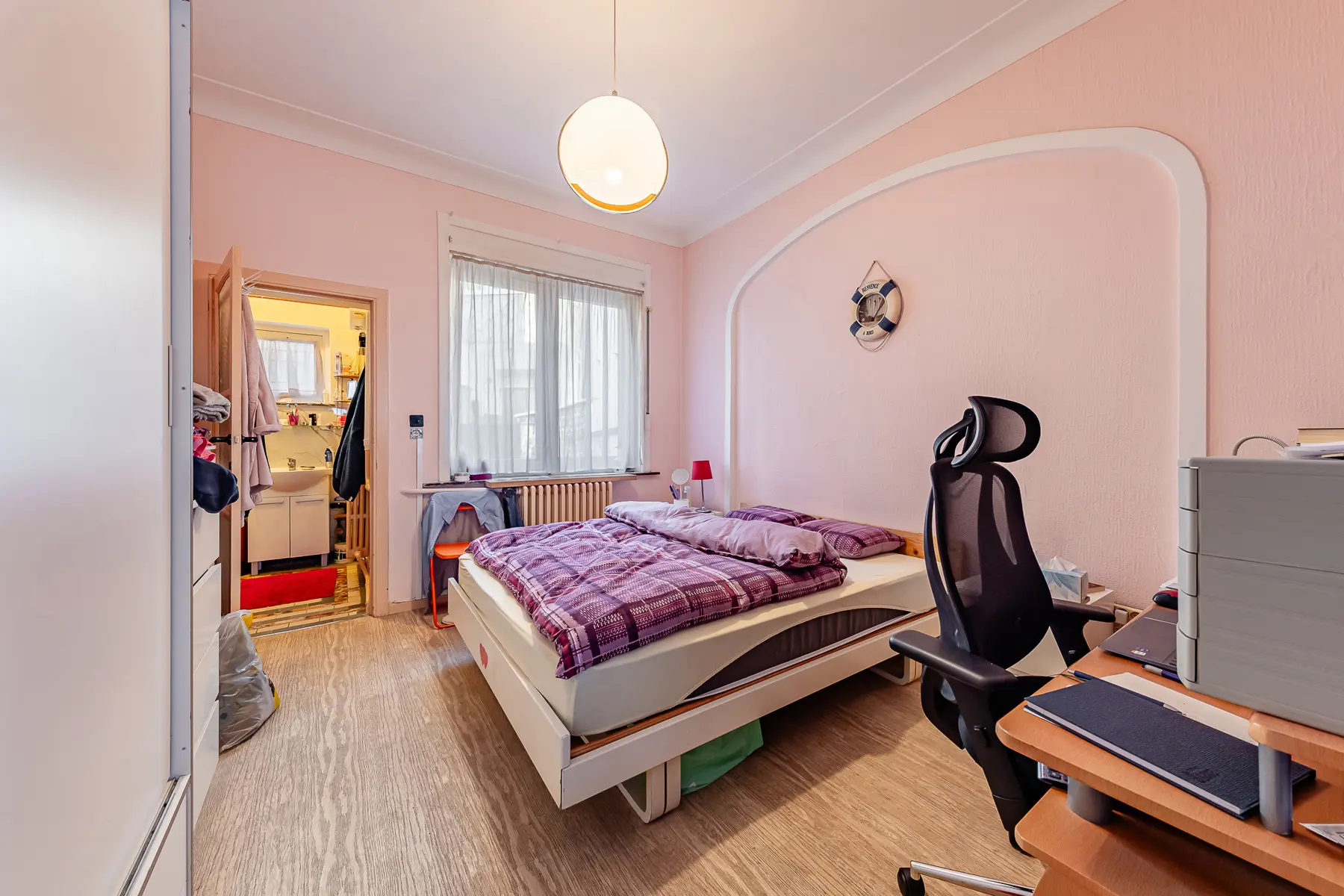 L'appartement se compose d'un hall d'entrée accueillant, d'un grand séjour lumineux (possibilité de séparer le séjour pour créer une chambre à part entière) , d'une cuisine à rénover, d'une salle de bain et d'une toilette privative. La loggia donne accès à la grande cour, idéale pour profiter des beaux jours en toute intimité.