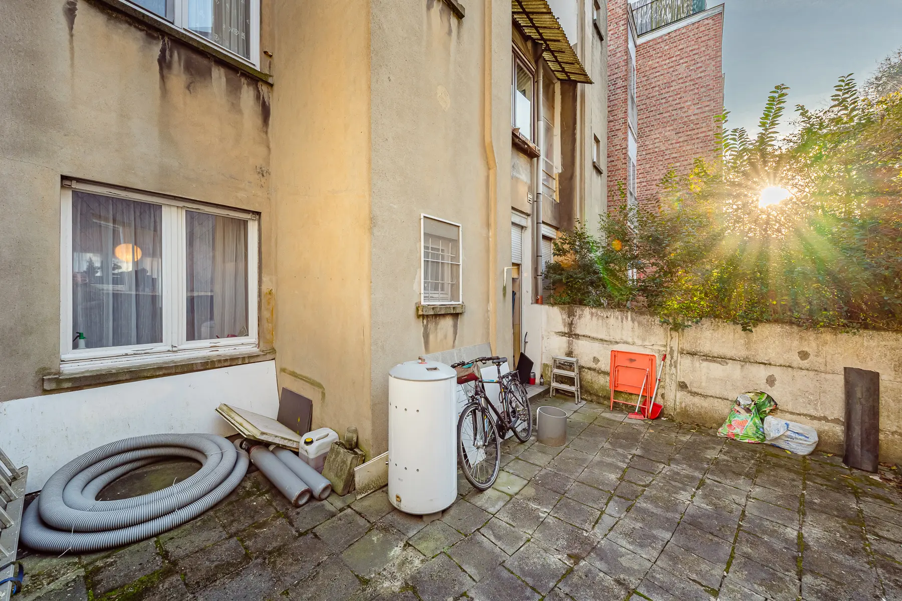 Idéalement situé dans un quartier paisible et à proximité de toutes les commodités, cet appartement traversant offre une surface de 51 m², agrémenté d'une magnifique cour privative de 35 m². Niché au sein d'un petit immeuble de 6 appartements avec des charges très faibles (sans ascenseur), il bénéficie également d'un statut patrimonial au sein de l'inventaire architectural de Bruxelles.