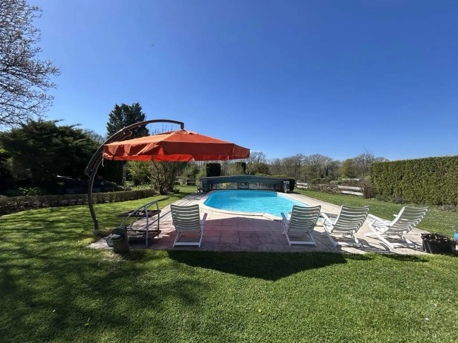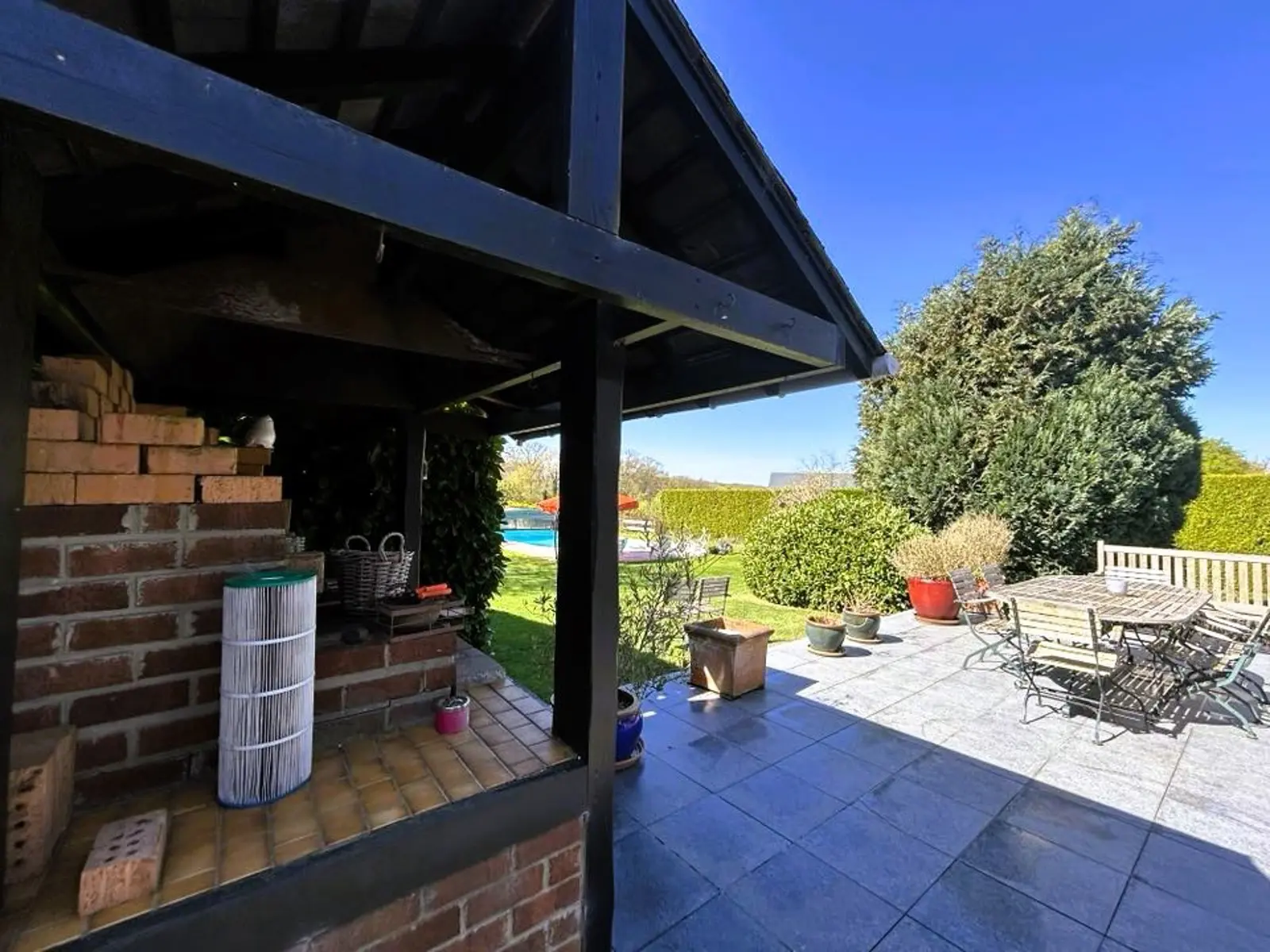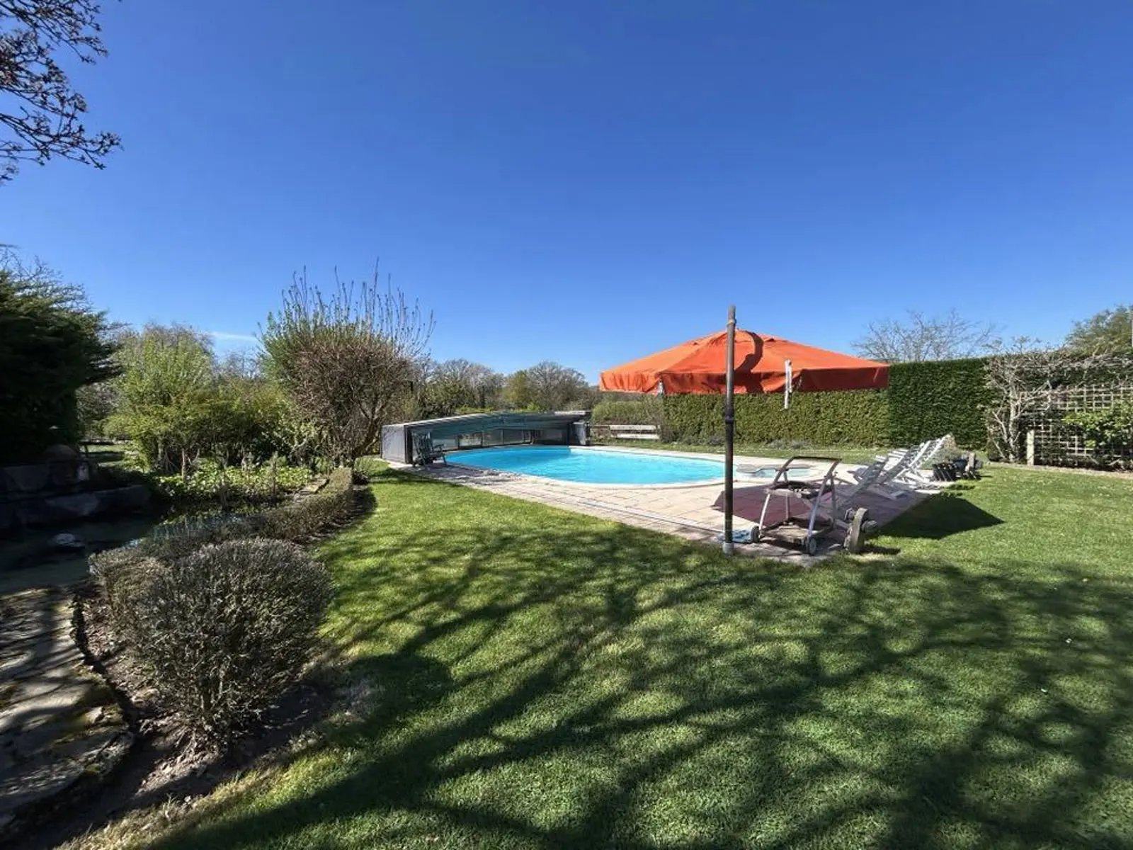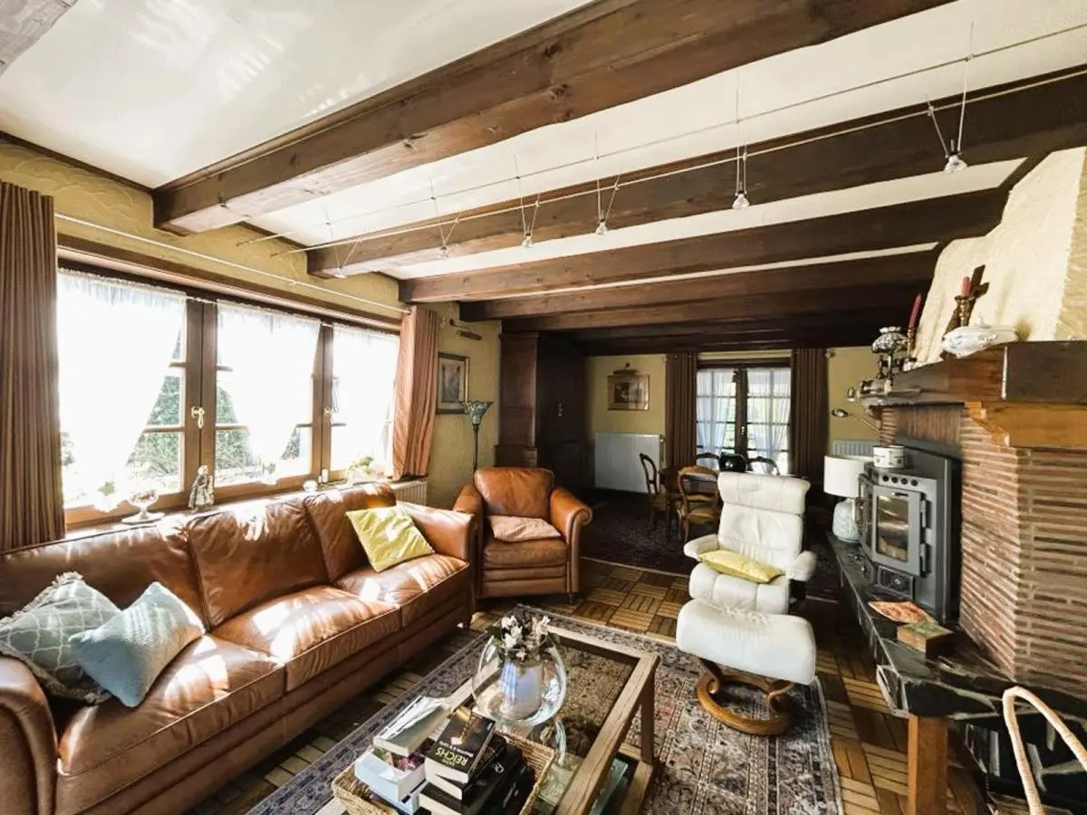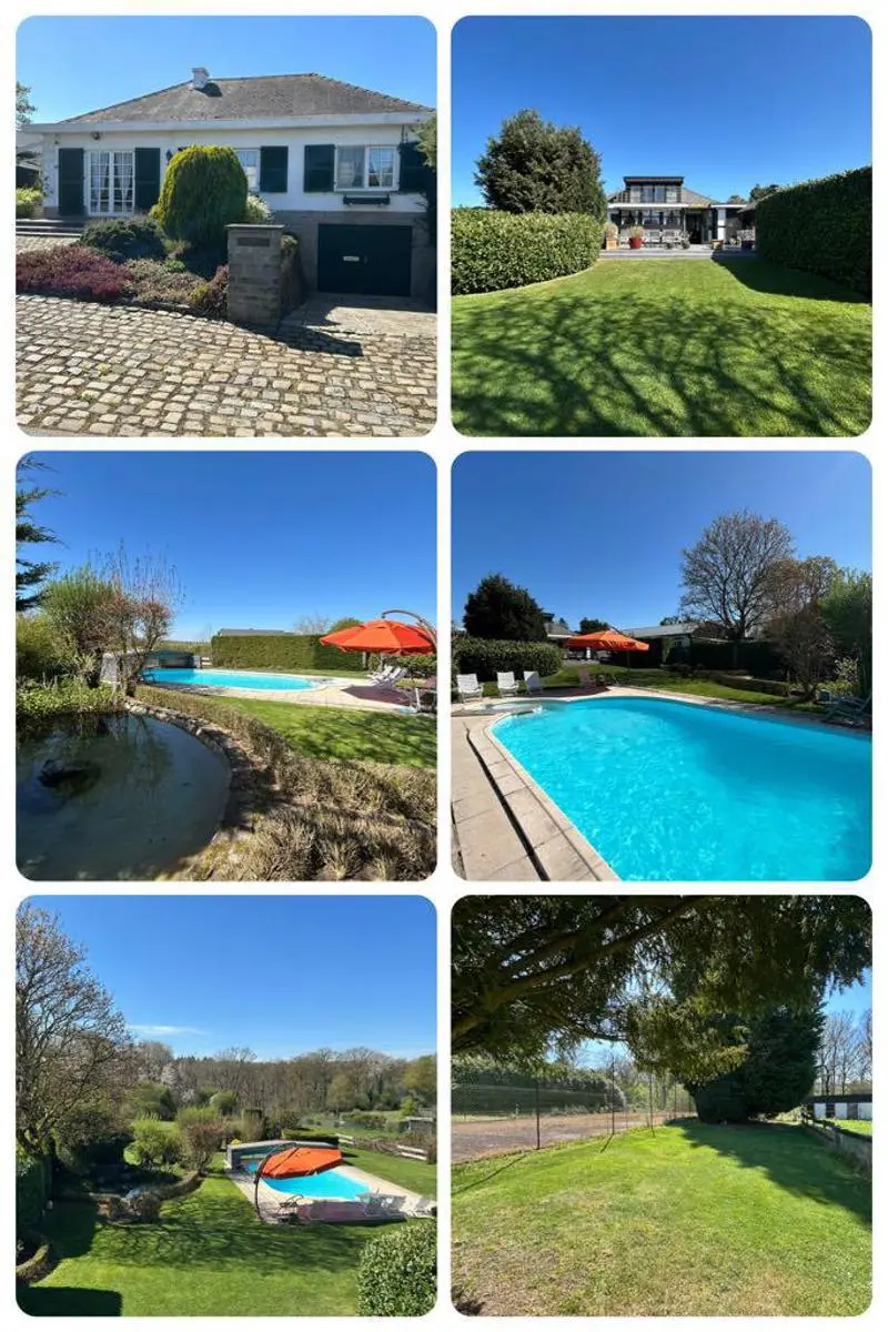 Superbe villa style fermette sise sur un magnifique terrain arboré de +/- 41 ares avec piscine. Cadre de vie exceptionnel, vue imprenable sur le bois, splendide terrain arboré exposé plein sud, superbe piscine avec abris + petit étang à côté de la piscine, jolie terrasse avec barbecue qui surplombe le jardin et la piscine et une seconde terrasse à l'étage surplombant la propriété. Box pour chevaux et terrain de tennis à restaurer. Coup de coeur assuré pour sa situation idyllique (quartier calme et prisé offrant une combinaison parfaite de tranquilité et proche des commodités locales et axes routiers). Plusieurs entrées dans la propriété (une entrée en façade avant, une entrée avec barrière avec accès sur le terrain + deux autres entrées latérales). A l'intérieur, vous serez séduits aussi par son charme authentique (poutres, portes en chêne,..) et son très bon état général. Les matériaux qui la composent ajoutent une touche chaleureuse à chaque pièce. Cette villa dispose de 3 chambres dont deux au rez-de-chaussée.