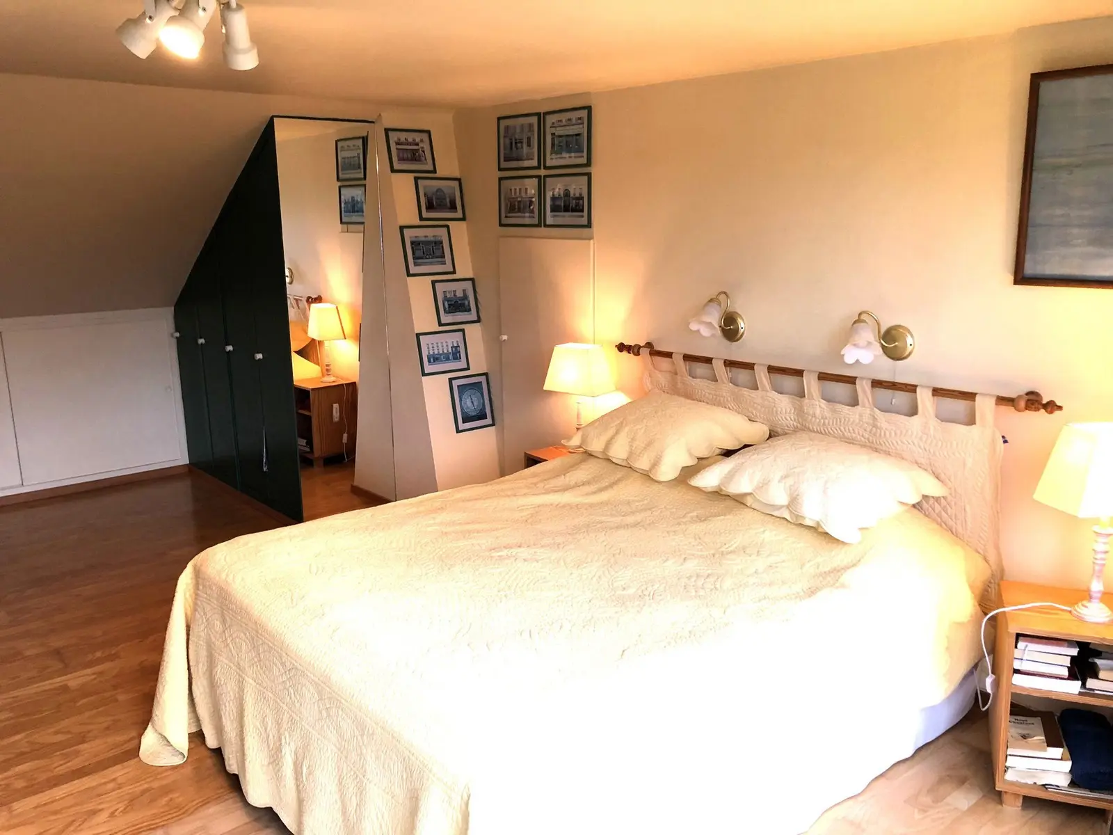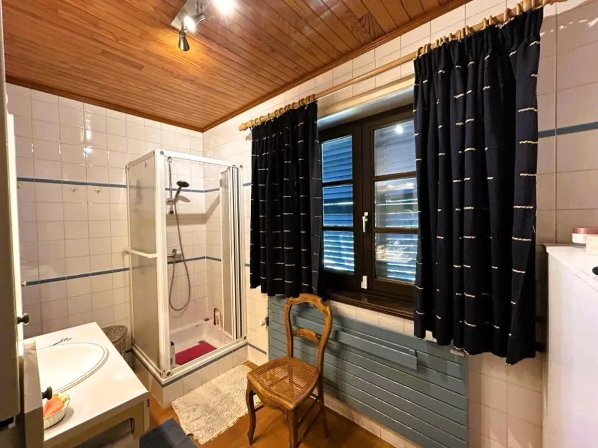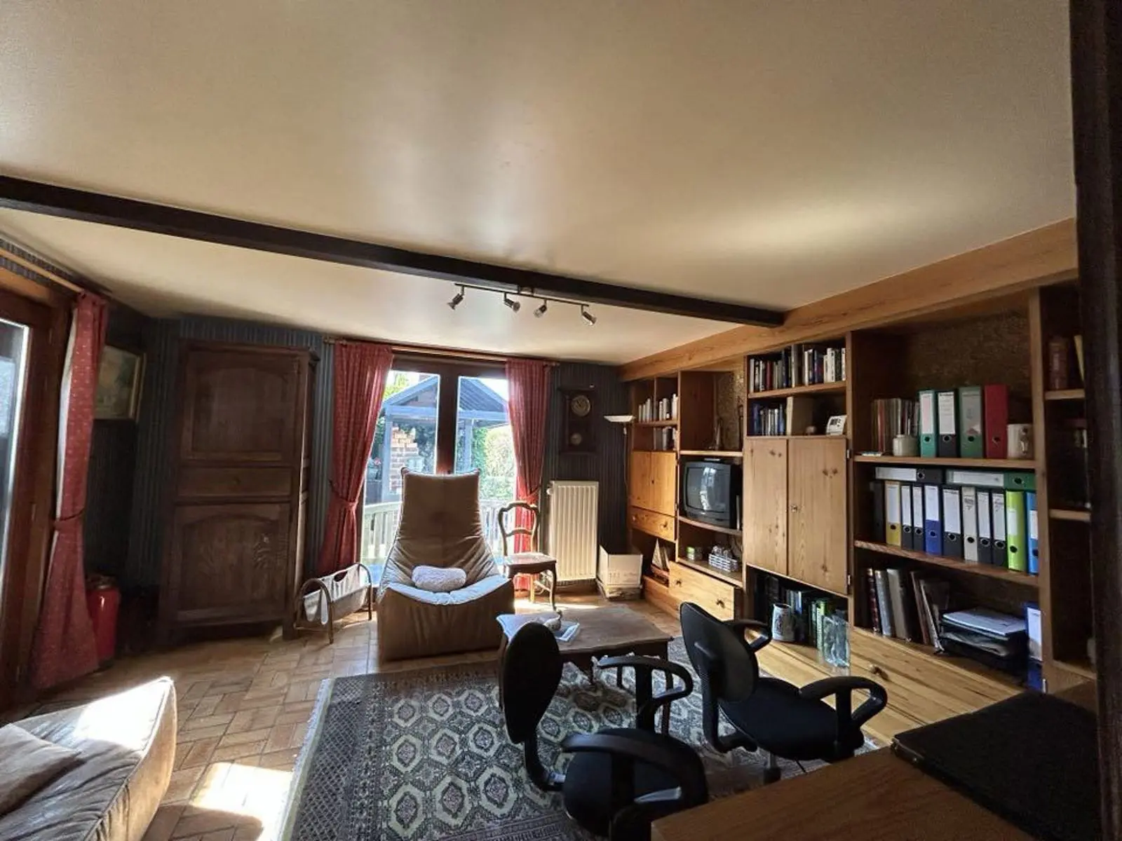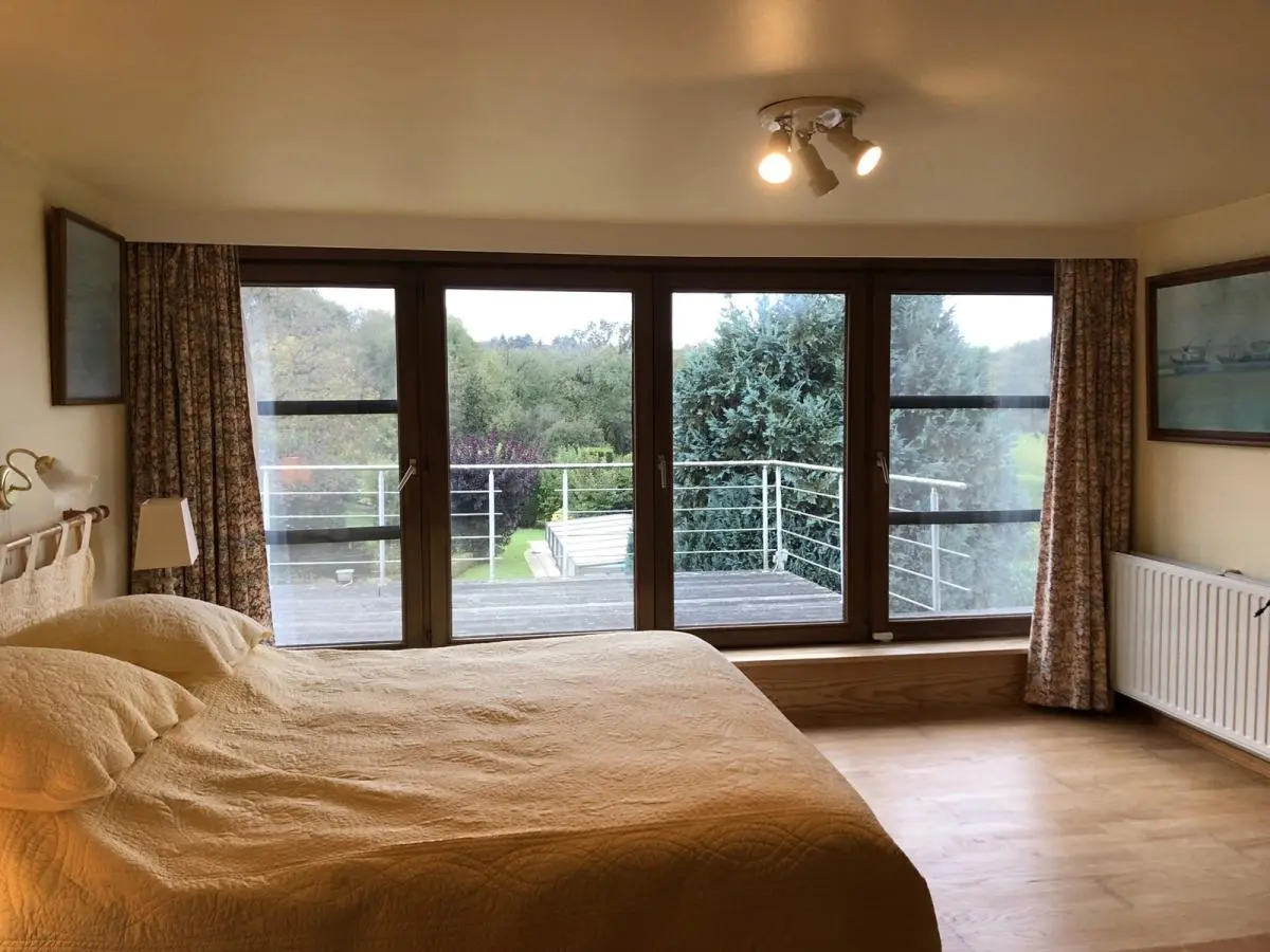 En voici la composition: 2 caves dont une chaufferie + un garage carrelé. Le rez-de-chaussée se compose d’un hall d’entrée avec placards en chêne, WC séparé avec lave mains, chambre ou bureau +/- 18M2 avec porte latérale (possibilité de profession libérale ou autre) et porte-fenêtre donnant sur la terrasse, superbe pièce de séjour +/-38M2 avec K7 au bois, 1 vaste cuisine équipée en chêne massif +/-25M2, 1 véranda, hall de nuit, 1 chambre +/- 12M2, 1 salle de douche avec lavabo et douche +1 petite salle de bains, 1 pièce dressing ou petite chambre +/-9M2. A l’étage : magnifique chambre +/- 25M2 +placards + combles + terrasse en bois surplombant la propriété.