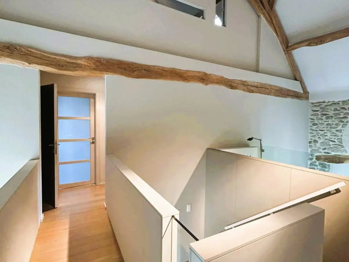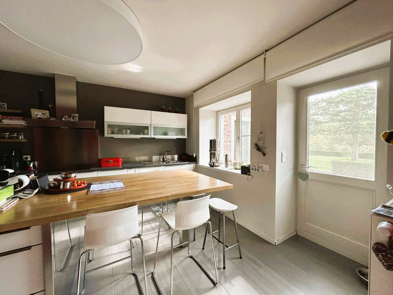 Propriété hors du commun composée d’une superbe villa érigée dans une grange du 18ème siècle en pierre bleue et d’une villa secondaire construite en 2012 actuellement louée, le tout sur un superbe terrain arboré de 36,95 ares. Cette splendide propriété vous séduira d’abord par ses extérieurs qui ont été luxueusement aménagés. Cadre de vie exceptionnel. Plusieurs entrées et accès à deux rues. Largeur de la propriété +/- 45M. Vous serez séduits par la bâtisse principale avec son ht niveau de construction tout en gardant l’authenticité de la grange, son architecture, ses rénovations qualitatives intégrées à une technologie de dernière génération et ses finitions design et raffinées réalisées par une architecte d’intérieur. Propriété coup de coeur vue à la télévision dans une "Brique dans le ventre". Cette villa est finie dans les moindres détails (nombreux dressing, meubles, bureau, tête de lit, miroirs sur mesure, éclairages qui restent,...). Cette propriété est composée également d’une autre villa construite en 2012 avec des matériaux de finition de dernière génération. Celle-ci est louée actuellement. Idéal pour toute profession ou comme investissement ou tt simplement à utiliser comme villa. Composition : Villa principale 5 chambres: Dés l'entrée, hall majestueux qui dévoile le faste des lieux (Hauteur +/- 9M) , WC séparé, Pièce de Séjour +/- 50M2 ouverte avec partie salon et partie sam (meubles TV + bureau + étagère sur mesure ). Cuisine équipée allemande +/- 20M2 (ilot central, LV neuf, vitro, four vapeur et four trad, frigo et congel Miele, hotte Novy,..), 1 pièce dressing (vestiaire) +/- 9M2, ensuite accès vers 1 bureau sur 2 étages de +/- 45M2 + buanderie+ chaufferie. Au 1er étage : Hall de nuit, 1 WC séparé, 1 salle de douche italienne, 1 pièce dressing +/- 23M2, 1 chambre +/- 17M2 avec placards, dressing, bureau et tête de lit sur mesure, 1 chambre +/-15M2 avec dressing, placards, bureau, lit sur mesure. Au 2ème étage: chambre parentale avec placards + cadre de lit sur mesure + 1 chambre bibliothèque et placards sur mesure. Au SS: 3 caves construites en 2001. Villa secondaire: construction: 2012. Finitions luxueuses et design. Surface : RDC : +/- 125 M2, 1er étage : +/- 45M2. SS : +/- 73 M2. Entrée indépendante, parking, Terrasses avt et arrière. Equipements: Châssis ALU DV avec coupure thermique, Système de pompe à chaleur Daikin. VMC, Electricité conforme. Equipements bâtisse principale: CC mazout à condensation (chaudière de 2015) avec sonde extérieure et thermostat de régulation + insert au bois. Châssis Bois DV Afzélia, moustiquaires, toiture isolée, 2 citernes à eau de pluie de 10000 l avec GH. Electricité conforme -->2038, 12 Panneaux photovoltaïques avec onduleur, Alarme intérieure et extérieure. Superbe bâtiment dans le jardin avec étage qui peut servir de logement indépendant ou d’espace supplémentaire + Abris de jardin+ étang . PEB classé B N° 2025100201681 Cons d'énergie primaire: 159 KWH/M2/AN; Prix pour l'ensemble: Faire offre à partir de 950 000 € soit pour: