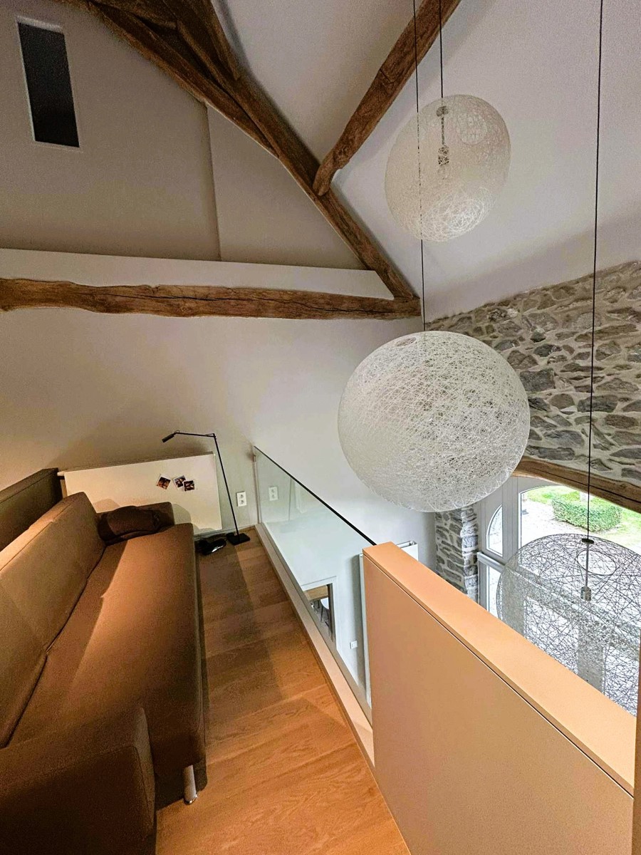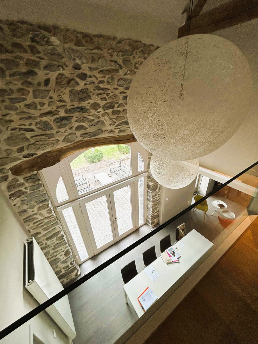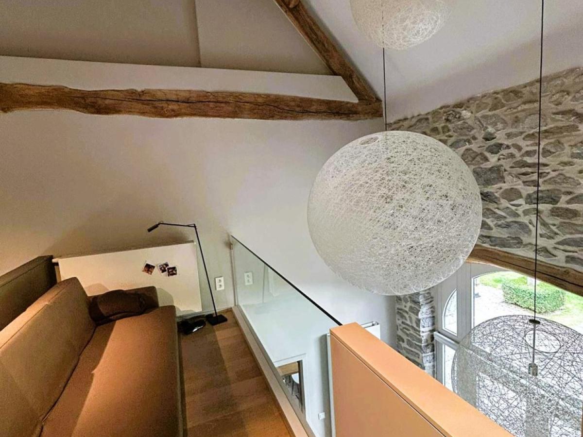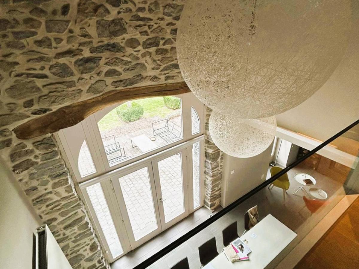 Coup de coeur assuré pour cette fermette de haut standing érigée dans une ancienne grange en pierre bleue du 18ème siècle remise à neuf. Bien rare dans la région, charme authentique combiné avec des rénovations haut de gamme. Cette villa est située sur un magnifique terrain de +/- 31 ares avec accès à deux rues. Elle vous séduira d'abord par son haut niveau de construction. Architecture haut de gamme et rénovations avec des matériaux de qualités intégrés à une technologie de dernière génération. Elle vous séduira ensuite par ses finitions design réalisées par une architecte d’intérieur. Maison vue à la télévision dans "une brique dans le ventre". Elle est finie dans les moindres détails et de nombreux dressing, placards, meubles sur mesure qui restent. De plus, le PEB est classé B et l'électricité est aux normes. Cette villa a été complètement rénovée (finie dans les moindres détails en 2015). Cadre de vie exceptionnel, les extérieurs ont été luxueusement aménagés, appentis dans le jardin qui peut servir aussi de logement secondaire avec car port et terrasse, petit étang, nombreux arbustes et arbres fruitiers, superbe terrasse qui surplombe le jardin. En voici la composition : Dès l’entrée, hall majestueux qui dévoile l’ampleur et le faste des lieux avec sa mezzanine et sa charpente apparente (Hauteur charpente +/- 9M) , WC séparé design, Pièce de Séjour +/- 50M2 avec k7 au bois, ouverte avec partie salon et partie salle à manger. Cuisine équipée allemande +/- 20M2 (avec ilot central en chêne, LV neuf, plaque vitro, four vapeur et four traditionnel, frigo et congélateur Miele, hotte Novy,..), 1 pièce dressing (vestiaire) +/- 9M2, ensuite accès vers 1 bureau ou autre sur deux étages de +/- 27 M2 au RDC + 16M2 à l’étage + buanderie avec accès vers l'extérieur. Au 1er étage : Hall de nuit qui surplombe le rez-de-chaussée, 1 WC séparé design, 1 salle de douche italienne design, 1 superbe dressing de +/- 23M2, 1 chambre +/- 17M2, 1 chambre +/- 15M2. Au 2ème étage : chambre parentale avec placards + 1 chambre avec bibliothèque et placards sur mesure. Au Sous-sol : 3 grandes caves construite également en 2015. Equipements: Chauffage central mazout à condensation (chaudière de 2015) avec sonde extérieure et thermostat de régulation + insert au bois dans la pièce de séjour. Châssis Bois DV Afzélia + volets + moustiquaires, toiture isolée, 2 citernes à eau de pluie avec GH. Electricité conforme jusqu’en 2038, 12 Panneaux photovoltaïques avec onduleur, PEB classé B N° 20251002016981. Cons d'énergie primaire: 163 KWH/M2/AN. Alarme intérieure et extérieure. Surface terrain : +/- 3100 M2 .