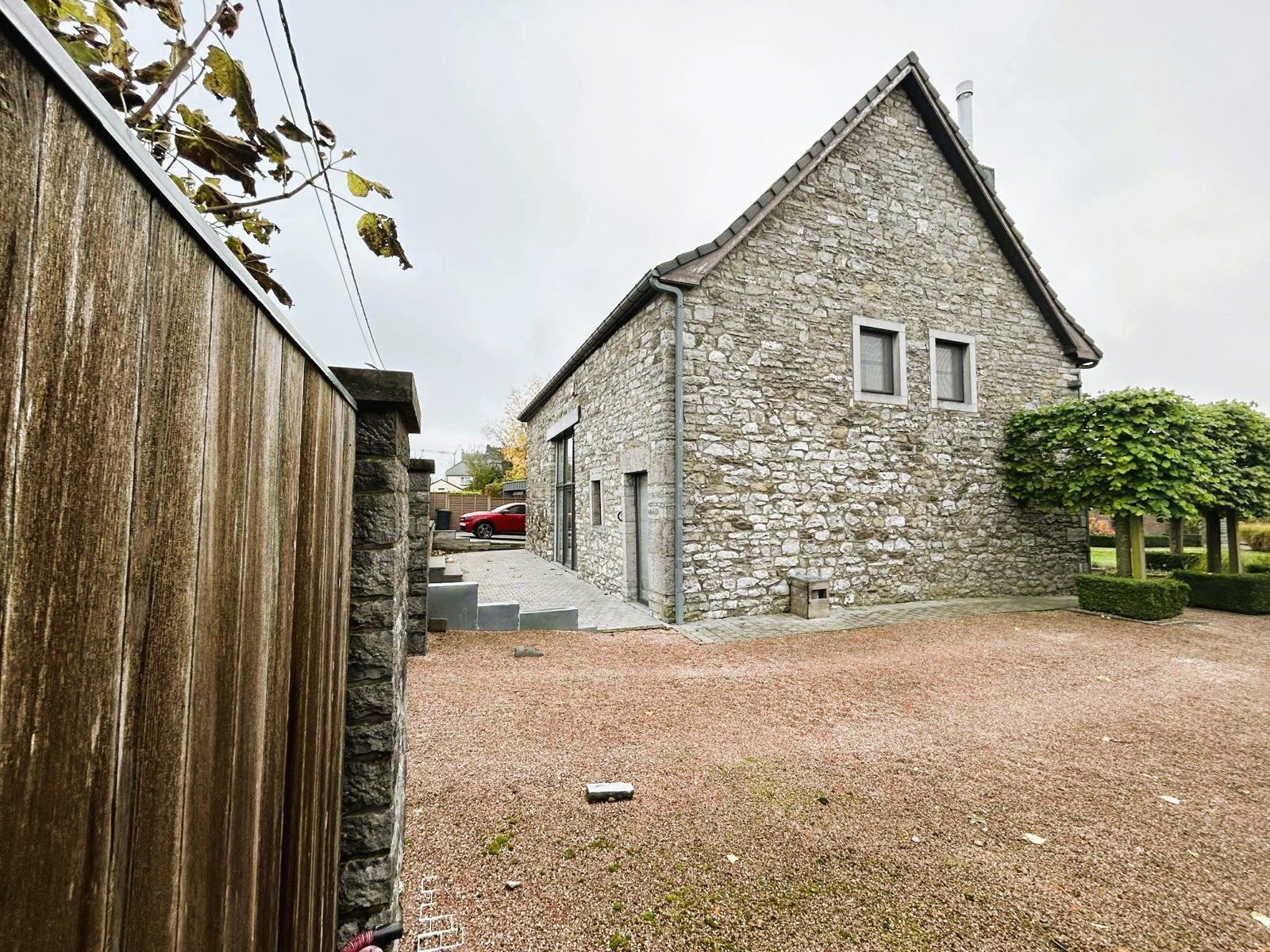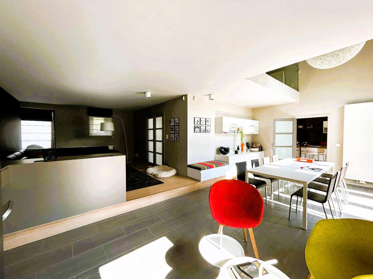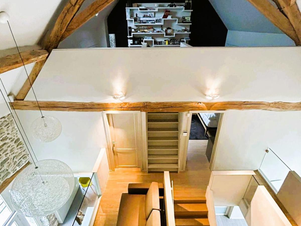 Coup de coeur assuré pour cette fermette de haut standing érigée dans une ancienne grange en pierre bleue du 18ème siècle remise à neuf. Bien rare dans la région, charme authentique combiné avec des rénovations haut de gamme. Cette villa est située sur un magnifique terrain de +/- 31 ares avec accès à deux rues. Elle vous séduira d'abord par son haut niveau de construction. Architecture haut de gamme et rénovations avec des matériaux de qualités intégrés à une technologie de dernière génération. Elle vous séduira ensuite par ses finitions design réalisées par une architecte d’intérieur. Maison vue à la télévision dans "une brique dans le ventre". Elle est finie dans les moindres détails et de nombreux dressing, placards, meubles sur mesure qui restent. De plus, le PEB est classé B et l'électricité est aux normes. Cette villa a été complètement rénovée (finie dans les moindres détails en 2015). Cadre de vie exceptionnel, les extérieurs ont été luxueusement aménagés, appentis dans le jardin qui peut servir aussi de logement secondaire avec car port et terrasse, petit étang, nombreux arbustes et arbres fruitiers, superbe terrasse qui surplombe le jardin. En voici la composition : Dès l’entrée, hall majestueux qui dévoile l’ampleur et le faste des lieux avec sa mezzanine et sa charpente apparente (Hauteur charpente +/- 9M) , WC séparé design, Pièce de Séjour +/- 50M2 avec k7 au bois, ouverte avec partie salon et partie salle à manger. Cuisine équipée allemande +/- 20M2 (avec ilot central en chêne, LV neuf, plaque vitro, four vapeur et four traditionnel, frigo et congélateur Miele, hotte Novy,..), 1 pièce dressing (vestiaire) +/- 9M2, ensuite accès vers 1 bureau ou autre sur deux étages de +/- 27 M2 au RDC + 16M2 à l’étage + buanderie avec accès vers l'extérieur. Au 1er étage : Hall de nuit qui surplombe le rez-de-chaussée, 1 WC séparé design, 1 salle de douche italienne design, 1 superbe dressing de +/- 23M2, 1 chambre +/- 17M2, 1 chambre +/- 15M2. Au 2ème étage : chambre parentale avec placards + 1 chambre avec bibliothèque et placards sur mesure. Au Sous-sol : 3 grandes caves construite également en 2015. Equipements: Chauffage central mazout à condensation (chaudière de 2015) avec sonde extérieure et thermostat de régulation + insert au bois dans la pièce de séjour. Châssis Bois DV Afzélia + volets + moustiquaires, toiture isolée, 2 citernes à eau de pluie avec GH. Electricité conforme jusqu’en 2038, 12 Panneaux photovoltaïques avec onduleur, PEB classé B N° 20251002016981. Cons d'énergie primaire: 163 KWH/M2/AN. Alarme intérieure et extérieure. Surface terrain : +/- 3100 M2 .