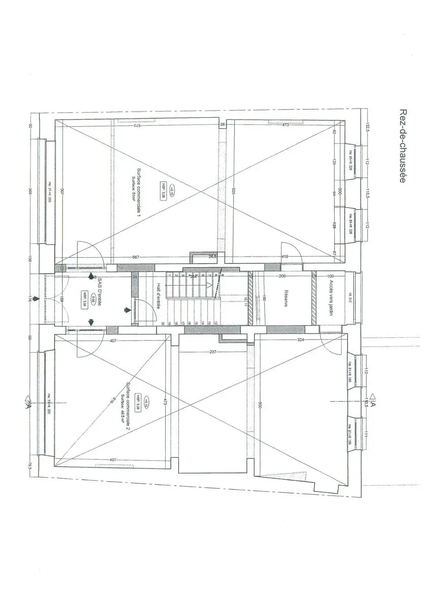 - Un RDC commercial à gauche avec +/-51 m2 de surface commerciale et +/-22 m2 de surface réserve et bureau; + cour et jardin + 70M2 caves. Excellent état. Loyer annuel 18600€.