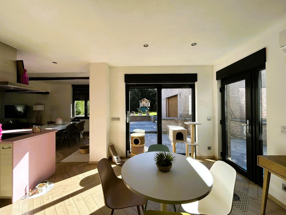 Coup de cœur assuré pour cette superbe maison de maître rénovée avec goûts avec 3 chambres + grand garage + joli jardin. Cette propriété dispose de 29 mètres de façade. Cette maison vous séduira d’abord pour son cachet mais aussi pour son parfait état général avec ses nombreuses rénovations récentes réalisées avec gouts (système de chauffage pompe à chaleur + clim récent, 12 panneaux photovoltaïques, boiler thermodynamique, électricité refaite, plafonnage, châssis PVC DV récent, volets électriques, parquet, superbe cuisine équipée de qualité,..). Elle vous séduira ensuite pour son bel espace habitable +/- 232M2 et son agencement des pièces très bien pensé avec ses possibilités d’aménager aussi des chambres supplémentaires. En voici sa composition: Le rez-de-chaussée se compose d'un hall d'entrée, d’un salon +/- 23M2, d’une superbe salle de séjour +/- 36 M2 ouverte sur la cuisine équipée de marque Défitec avec les électroménagers Smeg et le plan de travail en quartz). Séjour ouvert également sur la salle à manger de +/- 15M2, ensuite, vous trouverez une buanderie avec évier de +/- 10M2, un WC séparé et une chaufferie. Au 1er étage : Hall de nuit, 1 chambre +/- 16M2, 1 salle de bains +/- 8M2 avec double évier , baignoire et WC + 2 chambres de +/- 14M2 chacune. Au deuxième étage : grand grenier aménageable +/- 50M2 en 2 chambres supplémentaires. Au Sous-Sol : 1 cave +/- 28M2. Equipements: Excellent système de chauffage pompe à chaleur+ clim + chauffage central gaz, 12 panneaux photovoltaïques installé en 2022, boiler thermodynamique, Châssis PVC DV + porte d’entrée PVC DV + superbe portail récent avec porte motorisée, volets électriques, Electricité refaite, compteur bihoraire; A l'extérieur: Grand garage carrelé avec porte motorisée +/- 40M2 + annexe +/- 15M2 + parking + joli jardin arboré. PEB classé D N° 20260227005198. Cons d’énergie primaire : 264 KWH/M2.AN: Revenu Cadastral net : 743 €. Surface habitable : 232 M2 (Surface PEB). Surface terrain : 520 M2. Située dans une petite rue calme, à 2 pas de toutes commodités et une fois à l’intérieur, un véritable havre de paix. Prix: Faire offre à partir de 325 000 €. ( sous réserve d'acceptation des propriétaires). A voir sans tarder. Gsm: 0486/259520.
