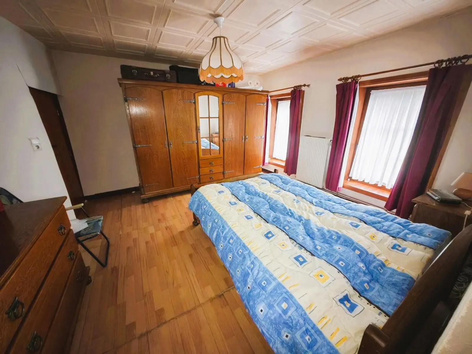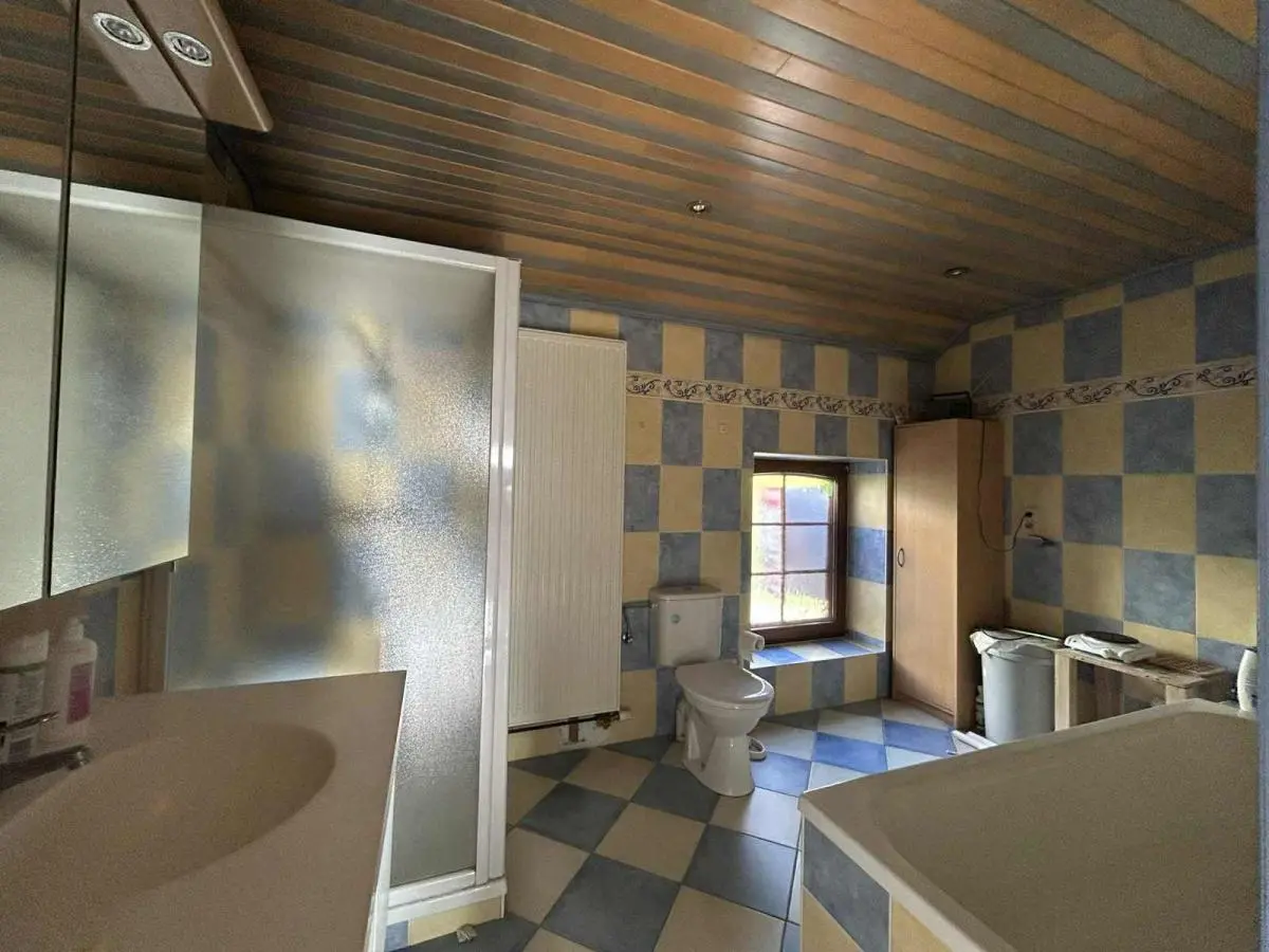 En voici la composition: Sous-sol: 1 cave. Rez-de-chaussée : Pièce de séjour +/- 25M2 avec partie salon et partie salle à manger, 1 pièce cuisine +/-21 M2, 1 buanderie, 1 chaufferie, 1 WC séparé. Terrasse, Jardin, 2 abris de jardin, parking, car port. A l’étage, hall de nuit, 3 chambres (+/-16M2, +/-13M2, +/-12M2) + pièce intermédiaire. 1 salle de bains +/- 8M2 avec baignoire, douche, évier et WC. Au 2ème étage: 2 vastes greniers. Equipements : Chauffage Central Mazout (chaudière Viessmann), Châssis BOIS DV, ELECTRICITE CONFORME jusqu'en 2051. Compteur bi-horaire, Etat du bien: bon état général. Surface terrain: 340M2. Surface habitable: +/-160 M2; PEB classé D N° 20220303004981- 315 KWH/M2.AN, Revenu Cadastral : 267 €. Prix: Faire offre à partir de 189 000 €. (Sous réserve d’acceptation du propriétaire).