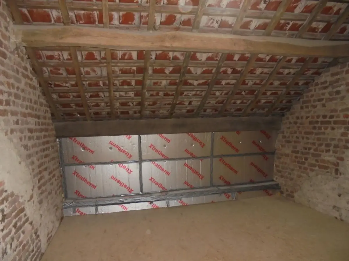 Jolie maison 3 façades en excellent état avec 2 chambres , petit jardin clôturé et car port. Composition: Au Rez-de-Chaussée: Vaste pièce de séjour ouverte sur la cuisine équipée et sur la terrasse et le jardin de +/- 1 are, 1 salle de douche. A l’étage: hall de nuit, 2 chambres . Au 2ème étage: grand grenier. Equipements: Châssis PVC DV imitation bois, Chauffage Central Mazout, Electricité aux normes, Compteur bi-horaire, beaux matériaux, remise en état avec soins. Loyer 800 € + 100 € ( provision pour le mazout de chauffage - Relevé par la société ISTA). Caution: 2 mois sur un compte bloqué. Libre le 1er mai 2025. Gsm: 0486/259520.