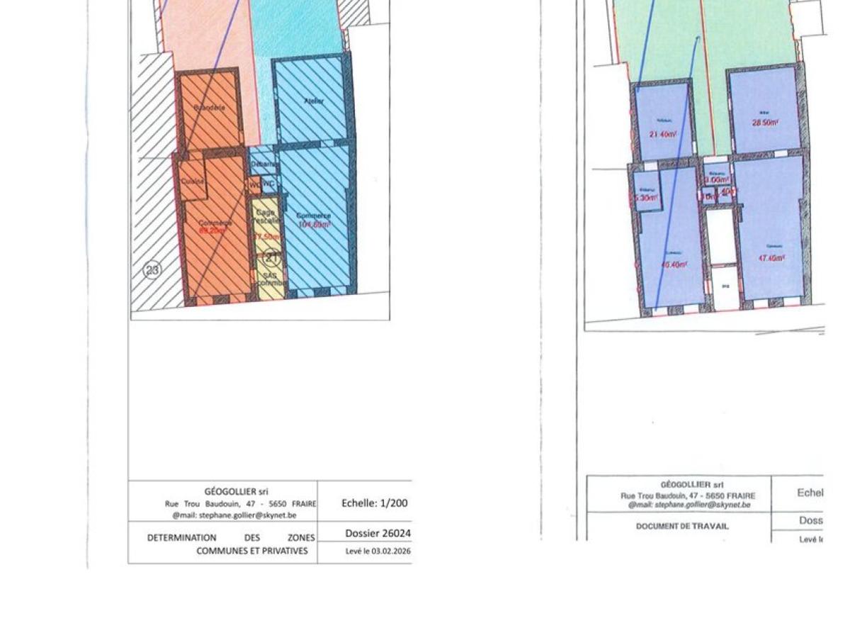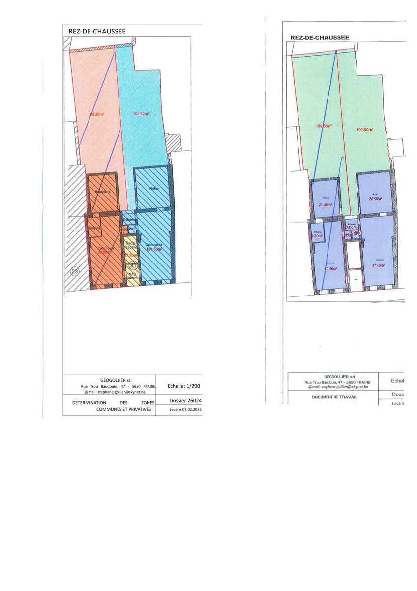 Excellent comme investissement. Emplacement stratégique en plein centre de Philippeville (rue commerçante principale). Ce rez-de-chaussée est érigé dans un superbe immeuble classé datant du début du XXème siècle. Actuellement loué par un magnifique fleuriste. Bail commercial. Loyer annuel: 18600 €. Ce spacieux commerce séduit en plus de son emplacement stratégique par sa luminosité, sa superficie et par son jardin privatif et sa vaste cave privative. En voici la composition tel que repris dans le plan du géomètre du 03-02-2026 : Composition: Lot 2 : Superbe Surface commerciale privative +/- 47M2 + une annexe construite en 2017 de +/- 28M2, accès vers la cour et le jardin privatif d’une contenance de +/- 109M2. 1 WC séparé + 1 débarras + 1 vaste cave +/- 70M2.
