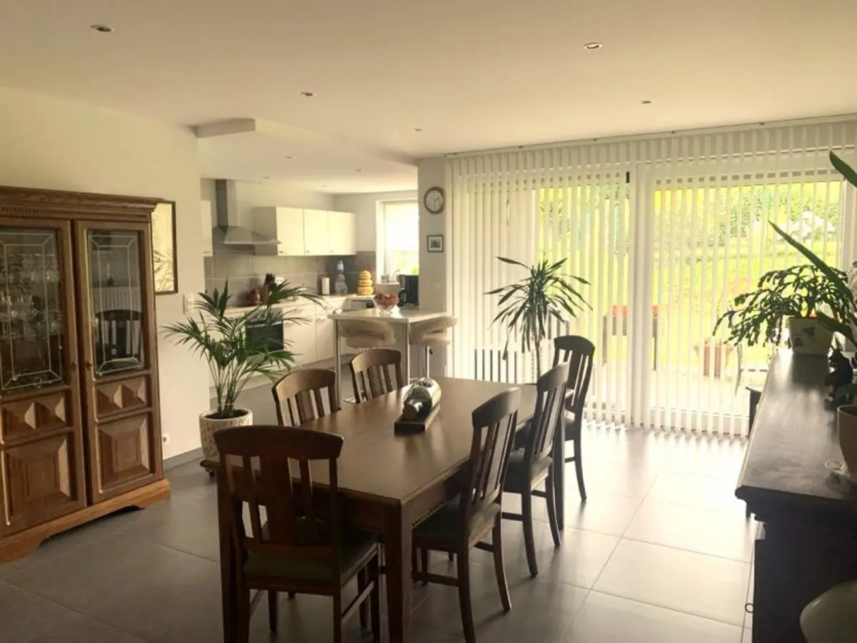 En voici sa composition : Superbe pièce de séjour lumineuse +/-50 M2 ouverte sur la cuisine équipée composée (d’un lave-vaisselle, taques vitro, hotte, four, frigo, table incorporée) avec vue sur la terrasse et le jardin, 1 buanderie, 1 WC séparé avec lave mains + 1 espace vestiaire, 1 hall de nuit, 1 chambre +/- 14M2, 1 chambre +/- 10M2, 1 chambre +/- 11M2, 1 salle de bain avec baignoire, douche, lavabo et WC suspendu, Terrasse +/- 22M2, jardin, cave et place de parking.