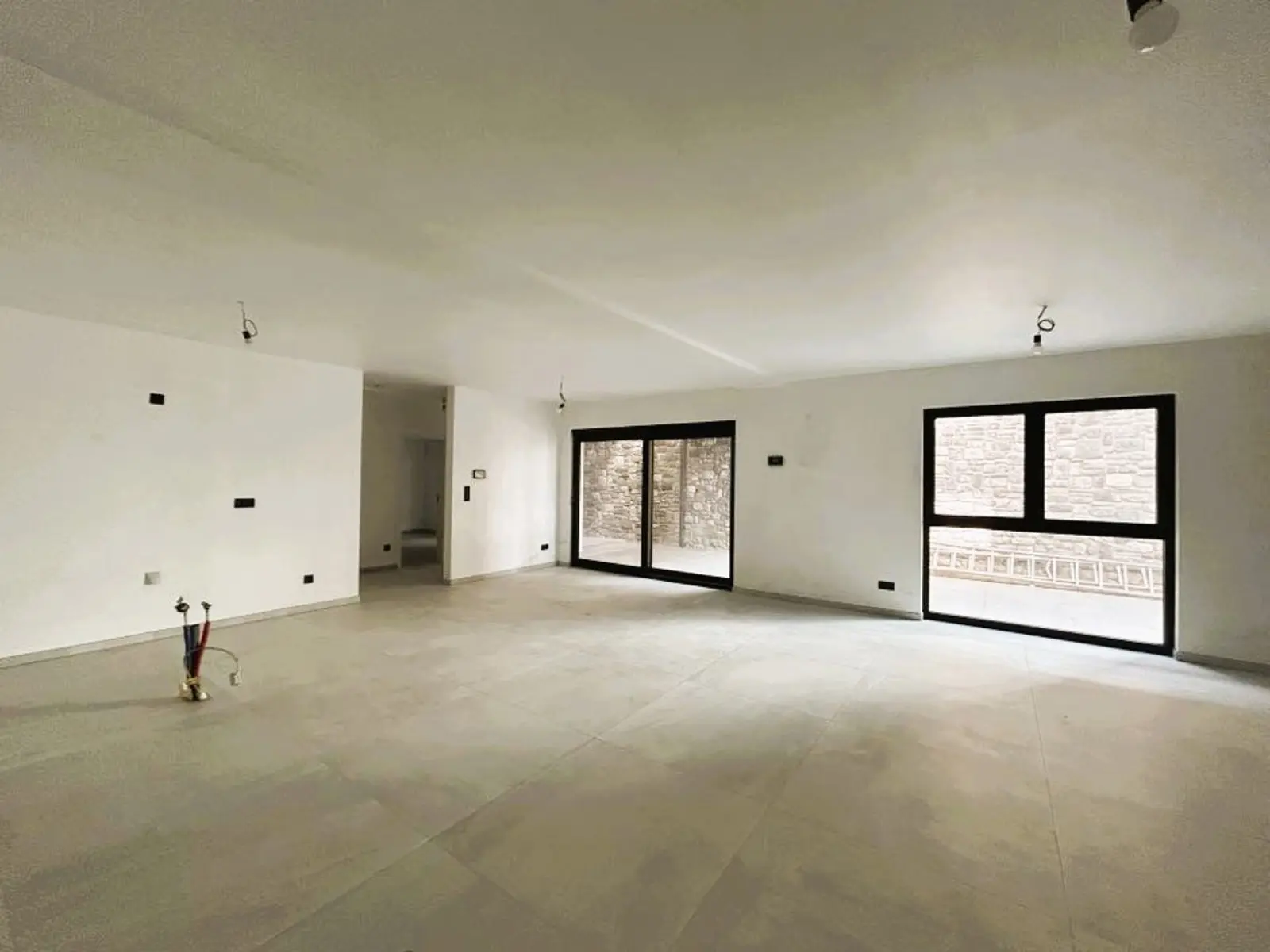 Equipements : .Chauffage par le sol, pompe à chaleur air /eau de marque VAILLANT, isolation, ventilation simple flux ( avec extracteur dans la cuisine, salle de douche, WC séparé et buanderie), Châssis ALU DV avec système d’aération, électricité réceptionnée, le tout carrelé avec superbe carrelage actuel, Appartement terminé en mars 2025. Il reste la cuisine et la salle de douche à équiper à choisir selon ses goûts.