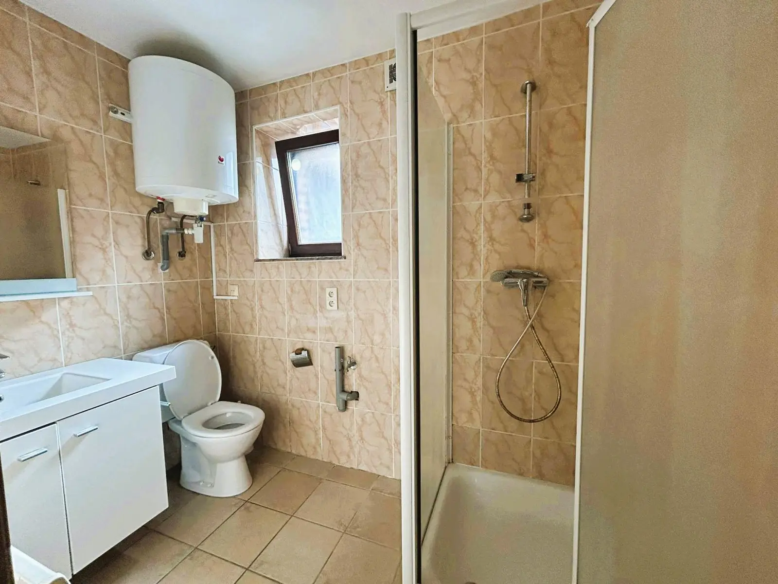 Studio sis au rez-de-Chaussée à louer dans un petit immeuble en pierre composé de 3 appartements. En voici la composition: Vaste pièce de séjour +/- 36M2 avec cuisine équipée (taque , four, hotte, évier, frigo), 1 salle de bains avec douche, wc et lavabo. 1petit espace grenier. Equipements: Châssis BOIS DV, Chauffage électrique, Carrelage au sol. Bonne construction, ancienne étable complètement rénovée en 2012. Espace habitable +/- 40M2. Compteurs séparés. Bonne situation, rue très calme. PEB classé F N°20260111014555; Consommation d'énergie primaire: 450 KWH/M2.AN; Electricité conforme. Loyer : 580 €. Possibilité de louer un emplacement de parking. Compteurs séparés pour l'eau , l'électricité. Garantie Locative : 2 mois sur un compte bloqué. Si intéressé envoi de la candidature par email sur l'adresse email suivante: fdamodice@immo-fd.be. Gsm: 0486/259520.