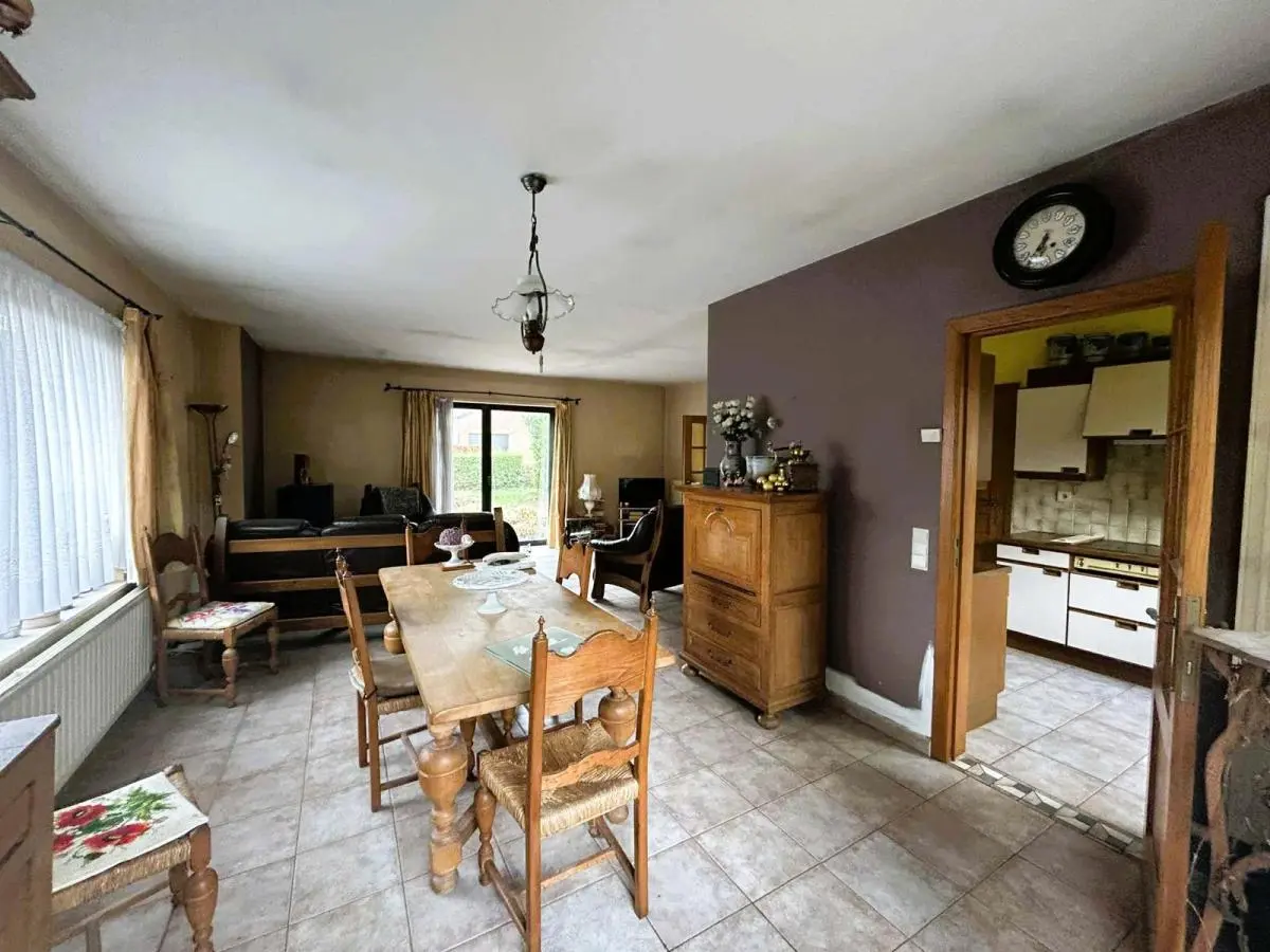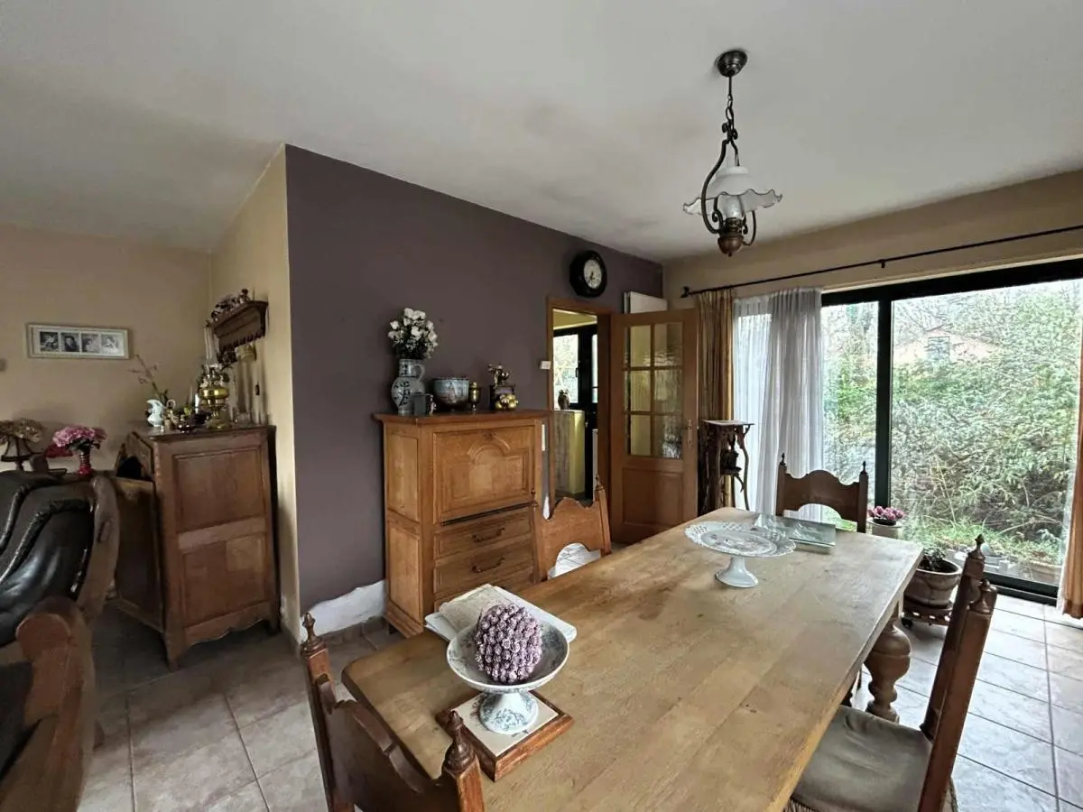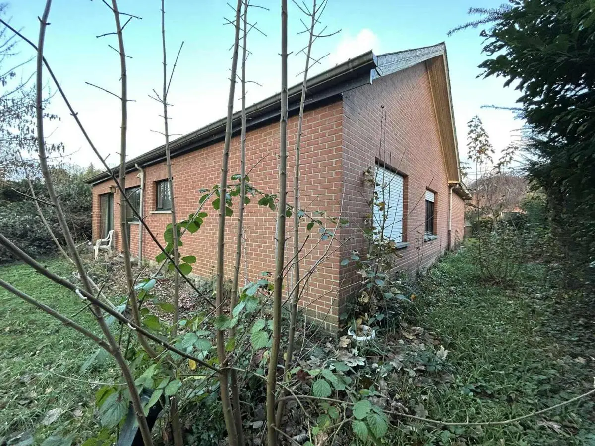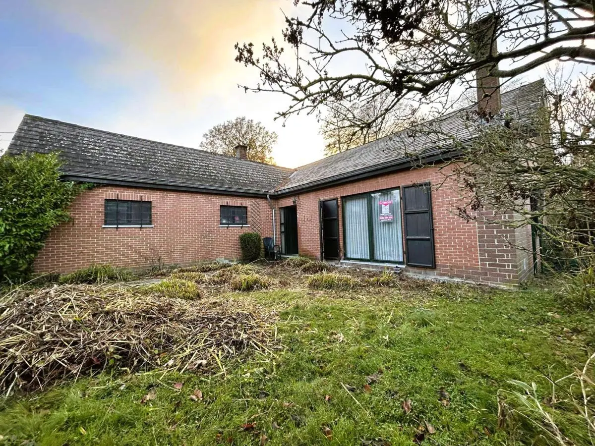 Superbe situation dans un quartier résidentiel prisé. Plain-pied avec 2 chambres, garage et jardin. Jolie villa plain-pied à rénover avec 2 chambres, garage et jardin sise sur un terrain de 8 ares. Superbe situation (quartier résidentiel prisé et proche de toutes commodités). En voici sa composition: Hall d’entrée qui dessert toutes les pièces, Pièce de séjour +/- 35M2, 1 cuisine équipée +/- 8M2 (Four, hotte, frigo, plaque vitro), une salle de douche avec lavabo Sanijura, douche et WC, 1 garage +/- 25M2 avec espace buanderie, 1 chambre +/- 13M2 + débarras, 1 chambre +/- 12M2. Grenier accessible par une trappe. Equipements: Chauffage Central MAZOUT chaudière Budérus de 2008, Châssis ALU DV partout sauf 2 SV, Volets manuels, Electricité à remettre aux normes, compteur bi-horaire, adoucisseur d’eau, toiture isolée, portes intérieures en chêne, PEB classé E N°20251025030514 - Cons d’énergie primaire : 412 KWH/M2/AN. Année de construction: 1974. Surface terrain: 800 M2. Surface habitable: +/- 110 M2- Revenu Cadastral: 1182 €. Etat du bien: A rénover. Derniers travaux réalisés à partir de 2000 : carrelage, chaudière, châssis DV ALU, porte d’entrée ALU DV, salle de bains, ventilation,... Prix: 285 000 €. A voir sans tarder. Gsm: 0486/259520.