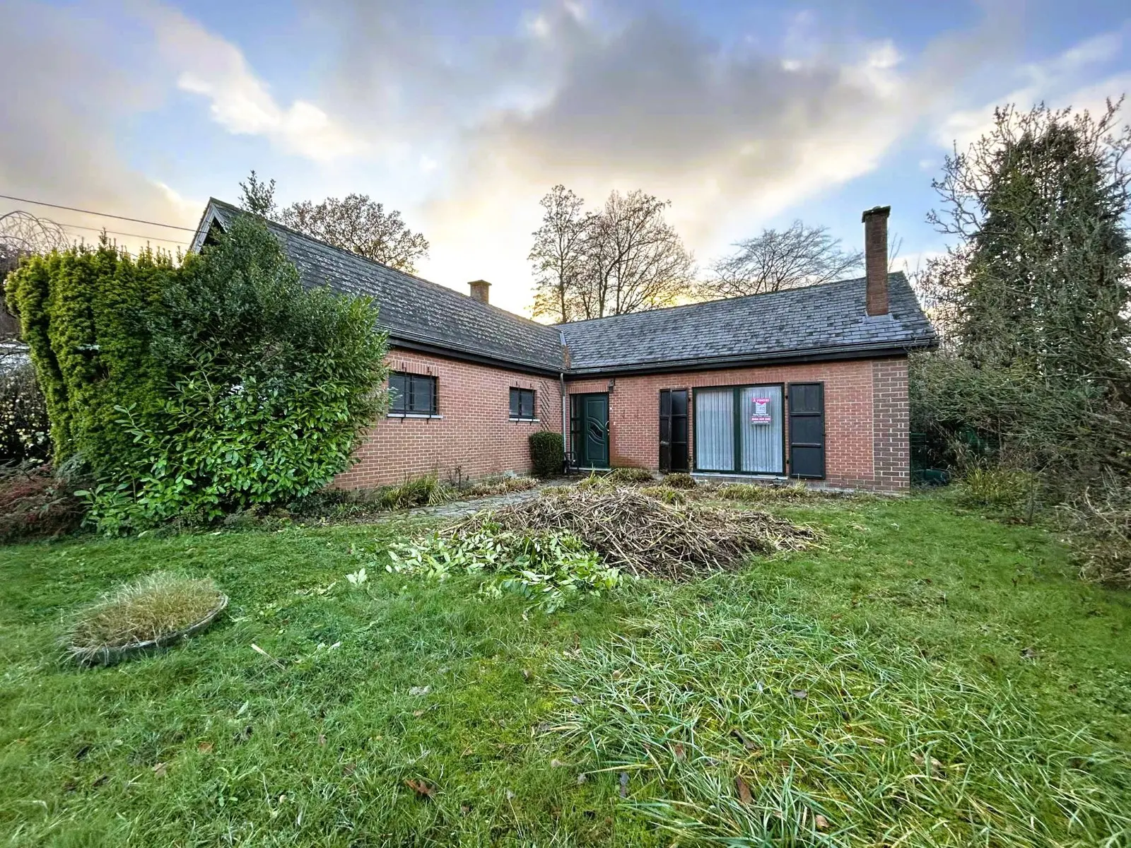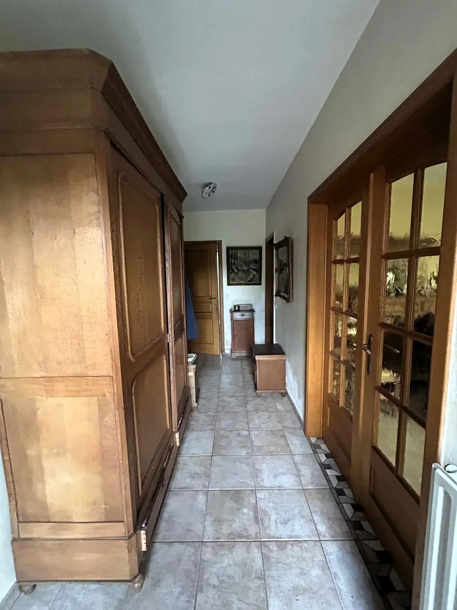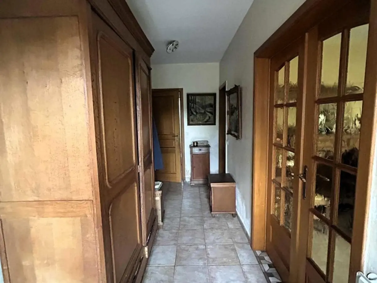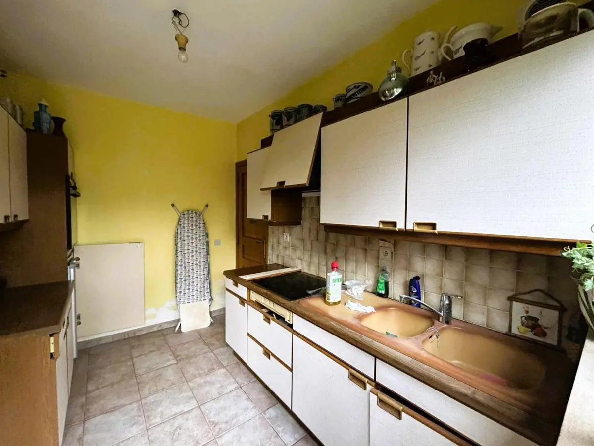 Superbe situation dans un quartier résidentiel prisé. Plain-pied avec 2 chambres, garage et jardin. Jolie villa plain-pied à rénover avec 2 chambres, garage et jardin sise sur un terrain de 8 ares. Superbe situation (quartier résidentiel prisé et proche de toutes commodités). En voici sa composition: Hall d’entrée qui dessert toutes les pièces, Pièce de séjour +/- 35M2, 1 cuisine équipée +/- 8M2 (Four, hotte, frigo, plaque vitro), une salle de douche avec lavabo Sanijura, douche et WC, 1 garage +/- 25M2 avec espace buanderie, 1 chambre +/- 13M2 + débarras, 1 chambre +/- 12M2. Grenier accessible par une trappe. Equipements: Chauffage Central MAZOUT chaudière Budérus de 2008, Châssis ALU DV partout sauf 2 SV, Volets manuels, Electricité à remettre aux normes, compteur bi-horaire, adoucisseur d’eau, toiture isolée, portes intérieures en chêne, PEB classé E N°20251025030514 - Cons d’énergie primaire : 412 KWH/M2/AN. Année de construction: 1974. Surface terrain: 800 M2. Surface habitable: +/- 110 M2- Revenu Cadastral: 1182 €. Etat du bien: A rénover. Derniers travaux réalisés à partir de 2000 : carrelage, chaudière, châssis DV ALU, porte d’entrée ALU DV, salle de bains, ventilation,... Prix: 285 000 €. A voir sans tarder. Gsm: 0486/259520.